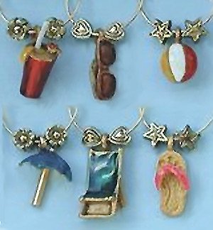 Relax a little! This On the Beach wine charm collection brings the beach to you. Since each set has six unique, individual charms, you can easily identify your glass by the charm attached around its stem. What's stopping you? Let the beach come to you!