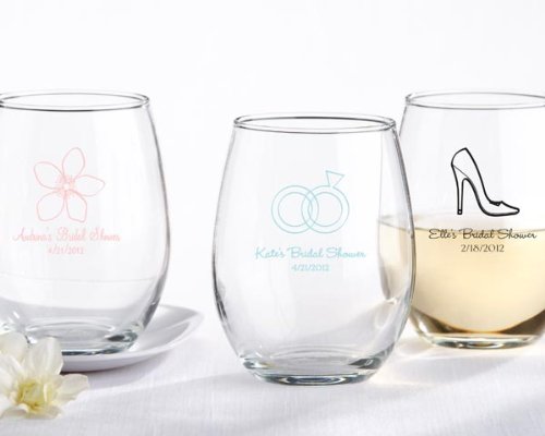 With these stemless wine glasses, there's nothing to get in the way of your celebration! Removing the stem transforms them into something wonderfully unique. Free to swirl your favorite wine, the glass can also be used to hold candies or even a tea light candle to make your tables positively glow. Personalized with your choice of design, your names and wedding date are the signature of elegance on this distinctive glass. Features and facts: - Clear wine glass is presented without the stem and holds 8 oz. - Can be personalized with your choice of design along with your names and wedding date in a variety of colors - Measures 3" diam. x 3 1/2" tall - Choose Black, Dark Blue, Fuchsia, Gold, Pink, Red, Silver, Sky Blue and White CLICK HERE TO DESIGN & PREVIEW YOUR PERSONALIZATION PLEASE NOTE: Please design your personalization using the designer link above. Once you have finished and are happy with the design please enter the information in the personalization fields above. Be sure to fill in the exact fields you used in step 4 of the label designer (EX. Text Line 1, Text Line 2, etc...) to ensure your labels are printed correctly. Minimum quantity of 48 required - Ships in 2-3 weeks. Due to the weight of these items UPS ground is the only shipping method available. read more..