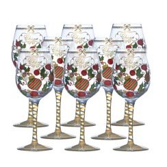 The unique design of this holiday-themed glass spreads some cheer by decking the halls with ornaments and holly. The design is carefully and exquisitely hand-painted. Set of eight, each 16 oz. read more..