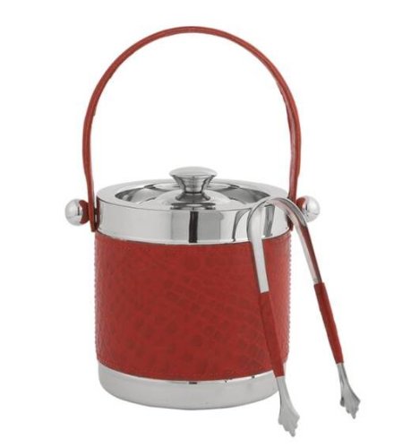 This sophisticated bar essential is designed for ease of use. Textured "crocodile" leather adorns the ice bucket and tongs, while non-tarnish nickel completes the cool, classic look. read more..