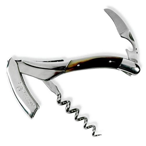 Franmara Premier Laguiole en Aubrac French Sommelier's CorkscrewEach corkscrew is handcrafted and signature marked by the same master craftsman. The combination of the finely serrated blade and bottle opener make this corkscrew practical and elegant. The cone-shaped filet worm tapers from 3.8 mm down to a fine point at the tip for a steady grip and sturdy penetration of the cork. The boot lever rests lightly on the bottle rim without causing damage or cracking to the bottle. These corkscrews are made of high polished stainless steel, except for the solid silver model, which comes with a numbered authenticity certificate describing the silver content and origin. Available in a variety of handle finishes: Buffalo Horn from Africa Brown Horn from Italian Buffalo Juniper Wood 10,000-Year-Old Mammoth Fossil Ivory from Siberia Solid Silver read more..