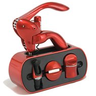 The Metrokane Houdini Six Piece Wine Tool Stand Kit (2705) features one of the finest wine openers available. This unit is extremely simple to use and can remove a cork in less than 20 seconds. This lever style corkscrew can open any size wine bottle and read more..