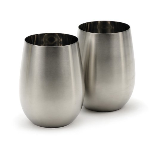 These wine glasses - minus the stem - are beautiful for serving red or white wine, and keep white wine chilled longer than glass or crystal. Made from 18/8 stainless steel with a beautiful satin finish exterior, mirror interior and 18-ounce capacity. Use them not only for wine, but also for juice and frozen drinks. Perfect poolside, on the boat, camping, or picnics! read more..
