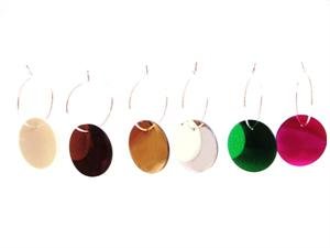Chic collection of wine glass charms made with oversized colorful pailette sequins. Glamorous stemware markers for entertaining. Unique gift idea!