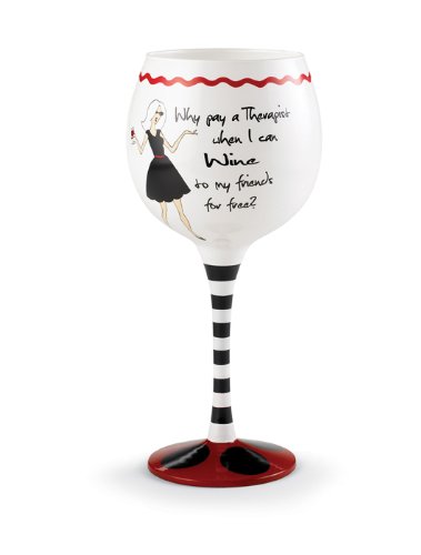 Fun and whimsical wine glass that reads "Who needs a Therapist when I can wine to my friends for free!" Sure to be a hit at any party! read more..