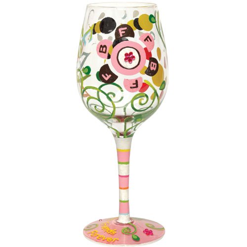 - Lolita licensed hand painted wine glass with bff wine cooler recipe on the bottom of the stem