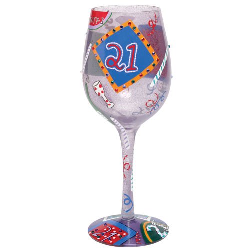 - Lolita licensed hand painted wine glass with twenty-one wine cooler recipe on the bottom of the stem