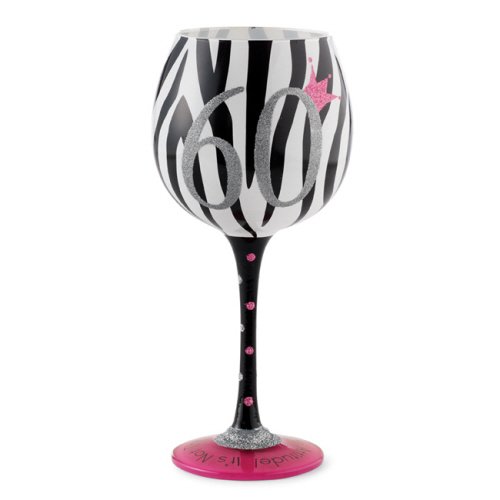 Mud Pie "60" sparkly wine glass reads "It's Not The Age, It's The Attitude!" around base and on packaging. read more..