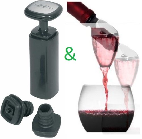 From beginning to end, You Have all you need, with this exciting NEW Metrokane Kit , No more waiting for red wine to breathe! and thanks to Metrokane's Rabbit Wine Aerating Pourer you can open and serve your next bottle of wine immediately. This sturdy plastic pourer with transparent aerator offers easy and uncomplicated pouring. Simply insert the Rabbit aerating pourer into a wine bottle as you would a conventional pourer. You don't need a separate aerator Enjoy them to the end with the Metrokane Save-the-Wine vacuum pump, which removes the air from opened wine bottles to preserve the wine taste and bouquet. Without the vacuum seal, the oxygen-exposed wine will stale quickly, dramatically affecting the flavor. Done? Not Yet! The pump comes with two pushbutton stoppers, each of which seals the vacuum tightly. read more..