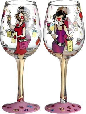 Bottom's Up "Fabulous At Any Age" Hand Painted 15-ounce Wine Glass. Celebrate with this festive hand painted wine glass. It is appropriate for either red or white wine. The oversized 15-ounce capacity allows plenty of space for the wine to breathe, allowing its full richness to unfold. Pictures show glass front and back. Price is per glass. Hand Wash. Each glass comes beautifully gift boxed. read more..