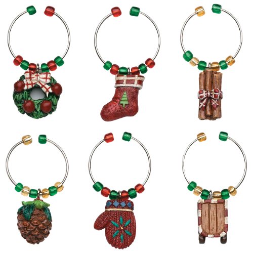 The Boston Warehouse set of 6 Country Christmas Wine Charms provides an interesting solution to an entertaining dilemma. The 1/2-Inch, hand painted charms on metal rings, allow guests to identify their wine glass when attached to the stem of the glass. Unique charms and clever designs make your party a hit. From Boston Warehouse - creative ideas for home entertaining. read more..